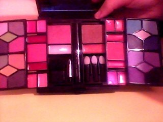 Bem esta paleta é uma das minhas preferidas, tem cerca de 20 sombras, 3 blush´s, 1 bronzer, 5 gloss, 5 batons, 2 iluminadores, 5 pinceis, 1 rimel e um espelho que não dá para ver na imagem.